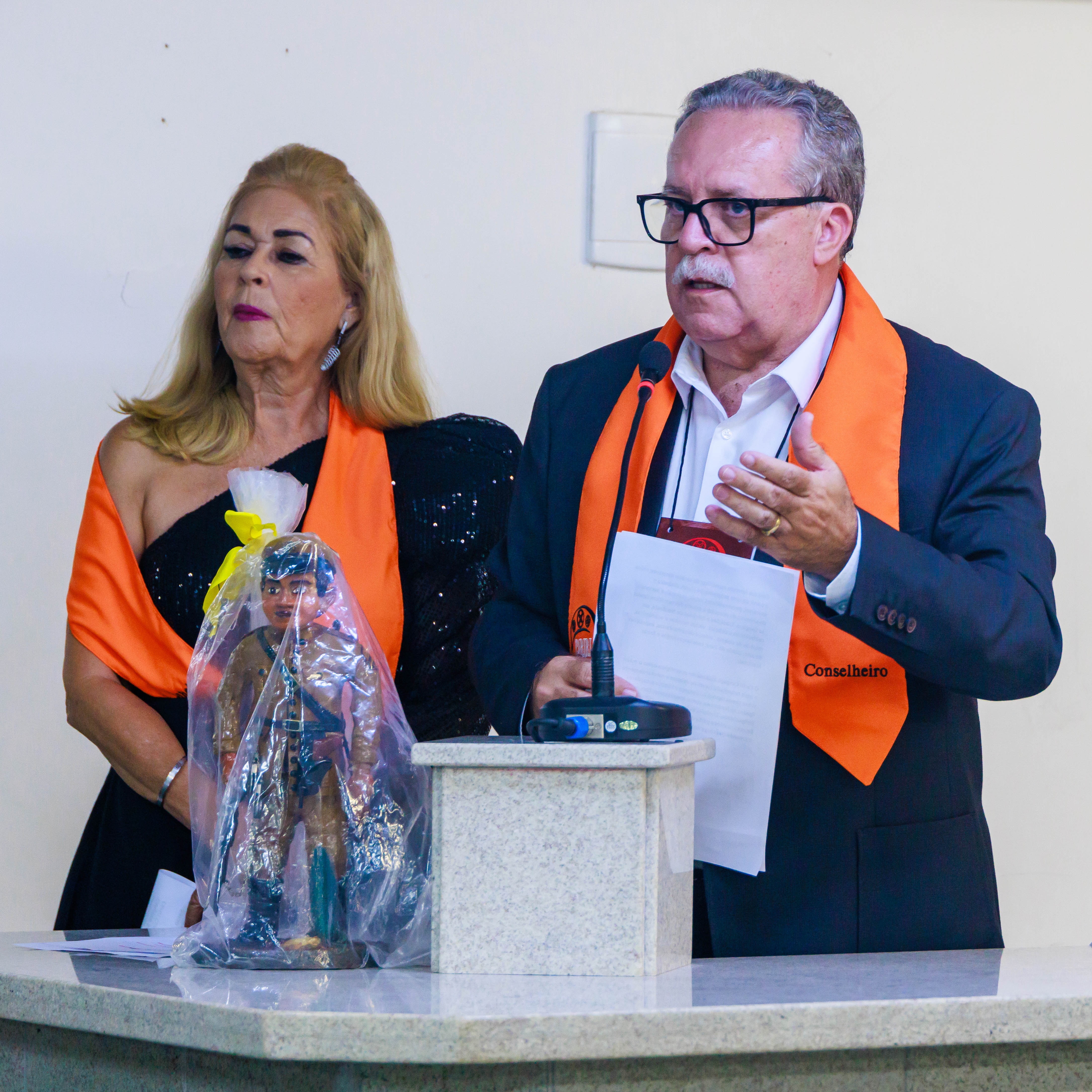 Luiz Ferraz Filho recebe de Rita Pinheiro a comenda em homenagem a